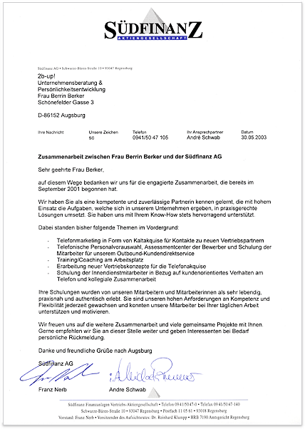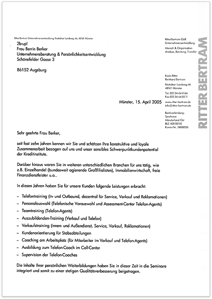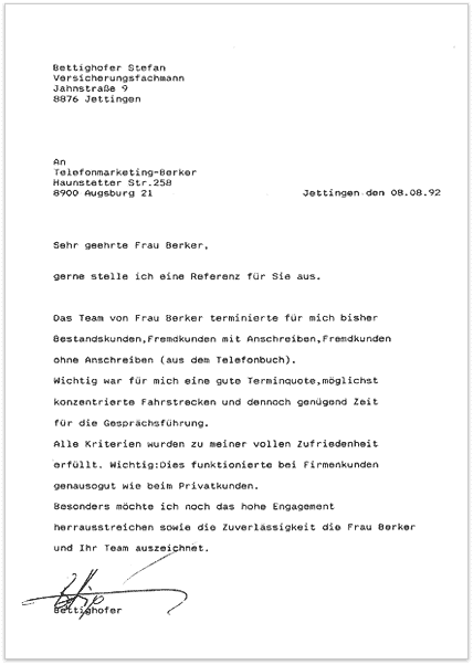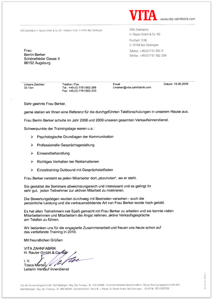 gerne sind wir bereit, Ihnen ein Empfehlungsschreiben