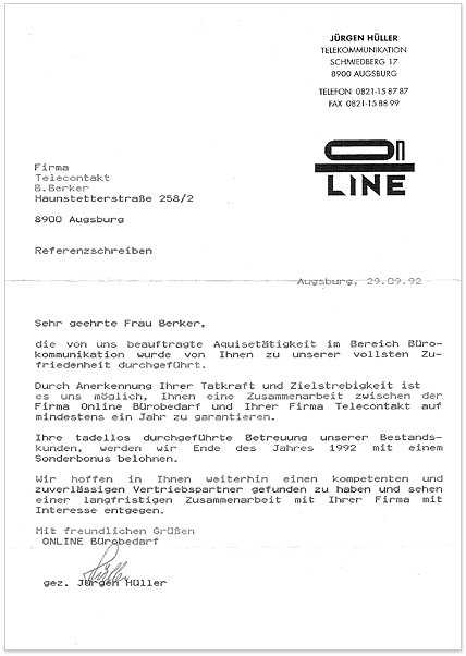 und Ihrer Firma Telecontakt auf mindestens ein Jahr